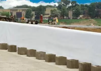 The Conkure™ Concrete Wet Curing Blankets are a white reflective covering designed specifically to be hydrated and reduce moisture loss throughout the concrete curing process.