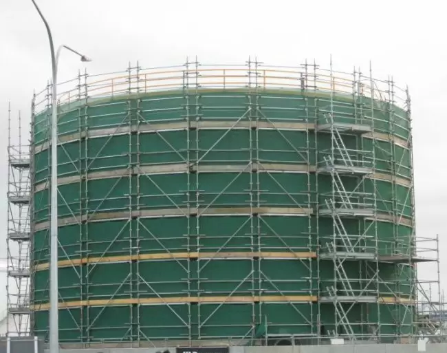 Our Green Scaffolding Debris Netting is manufactured with tear resistant knitted polyethylene that features a reinforced border edge with button holes placed every two inches for quick and secure attachment. This netting is generally applied at construction and demolition job sites. The product is UV treated. The netting color is Green / Black